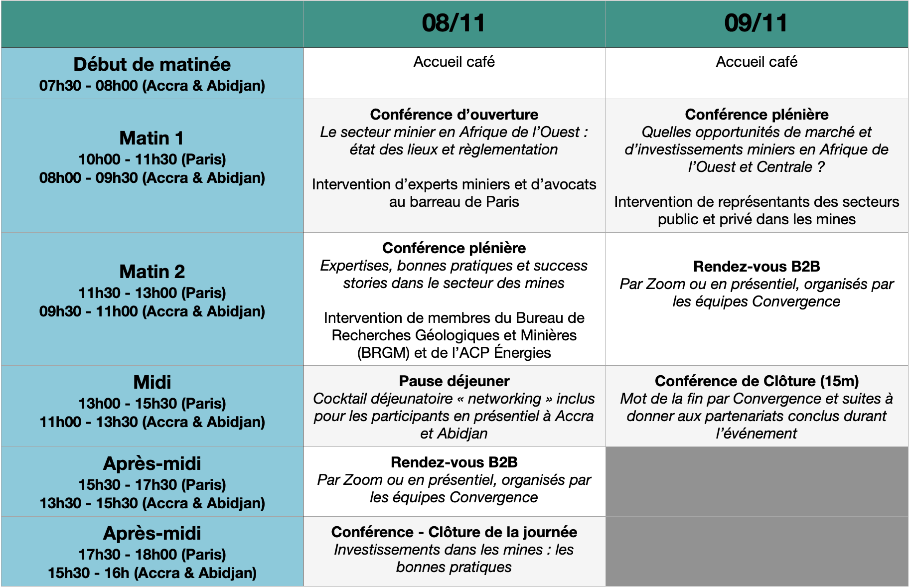 - Conférences sur les grands enjeux africains et européens pour les États, opérateurs (internationaux et locaux) et fournisseurs/prestataires de services